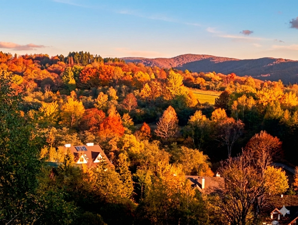 z którego roztacza się zachwycający widok na pasma górskie oraz wschód słońca.