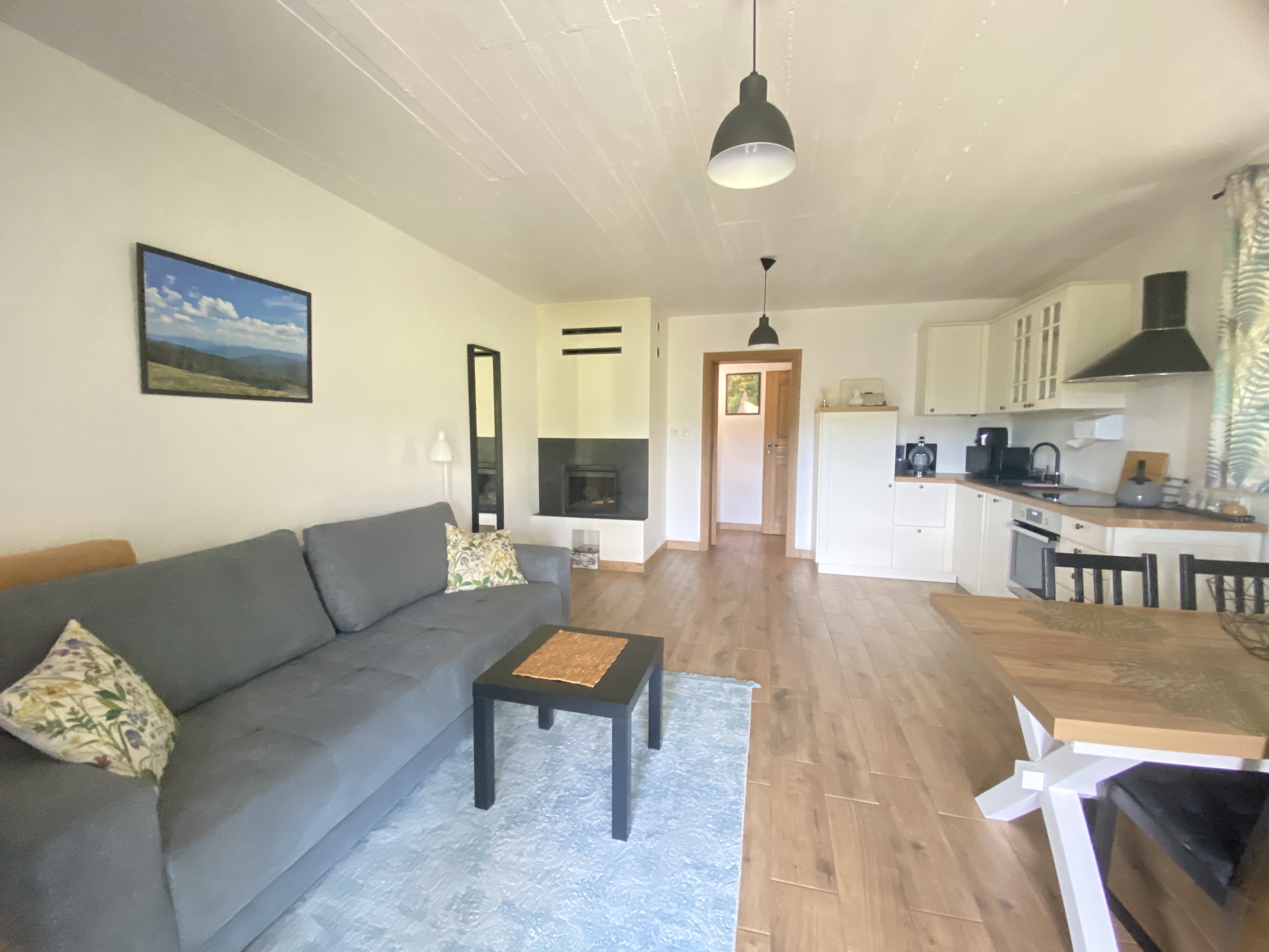 Apartament z kominkiem znajduje się na poziomie 0, posiada niezależne wejście z zewnątrz.