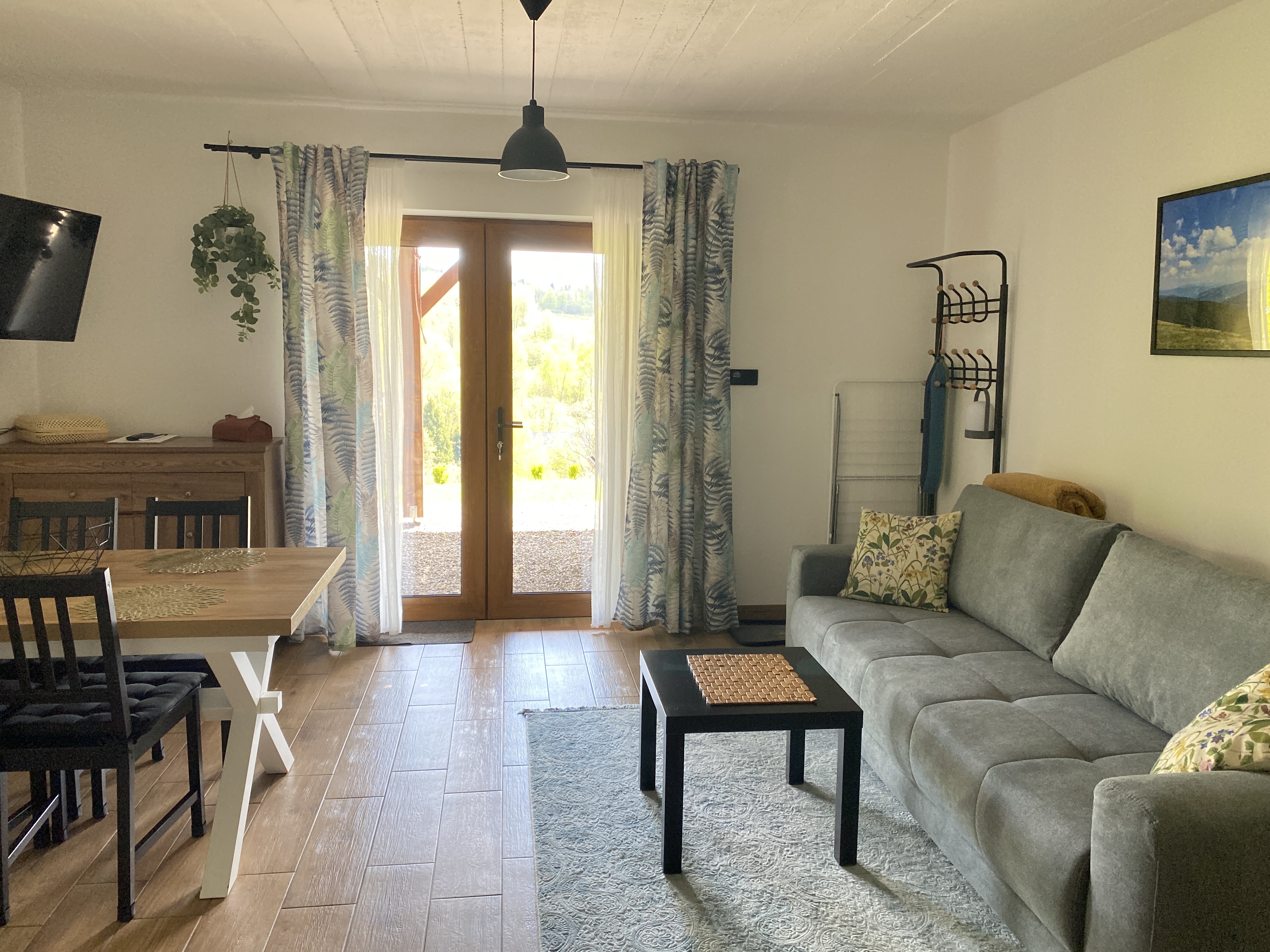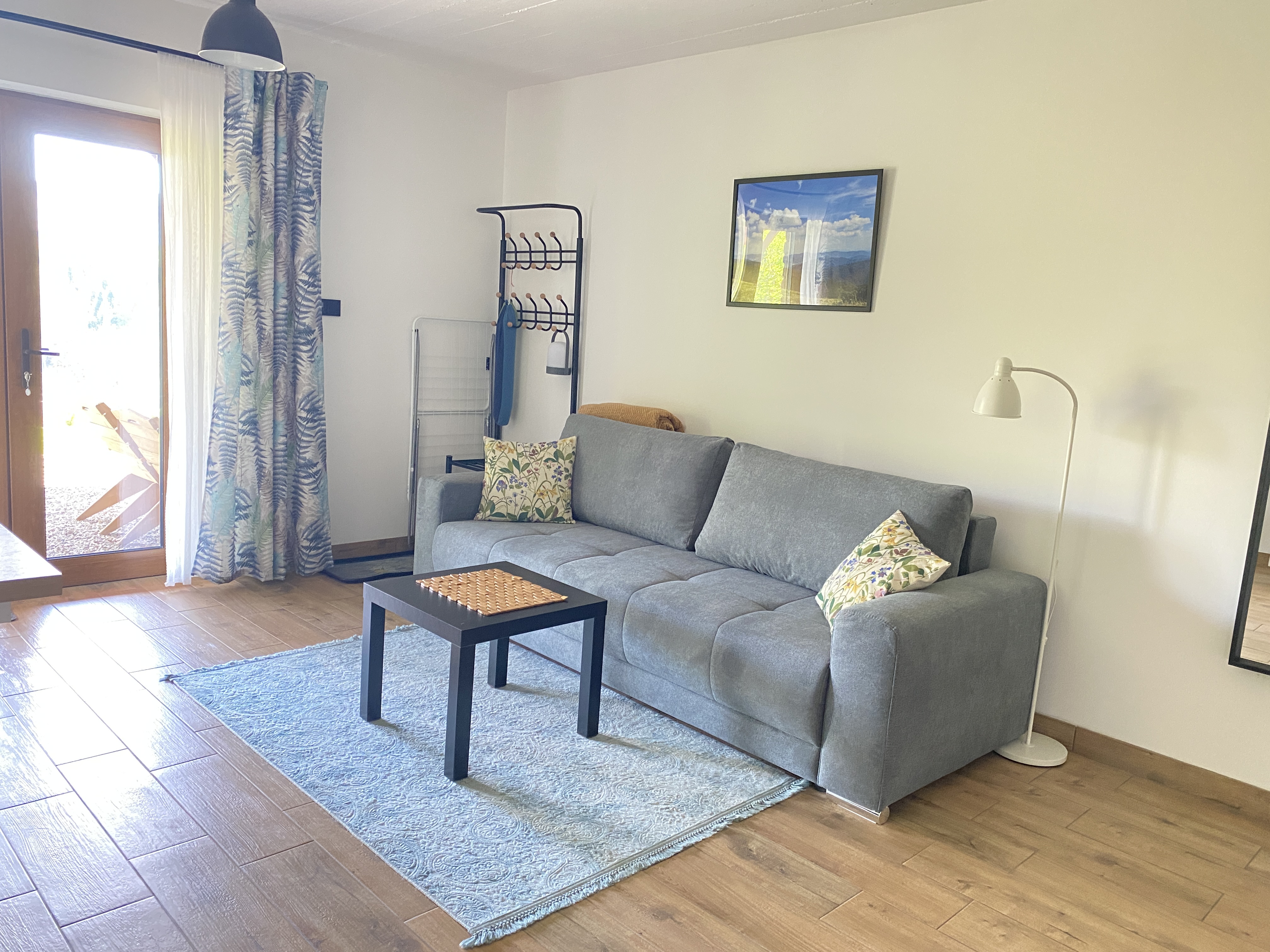W salonie znajduje się dwuosobowa rozkładana kanapa,