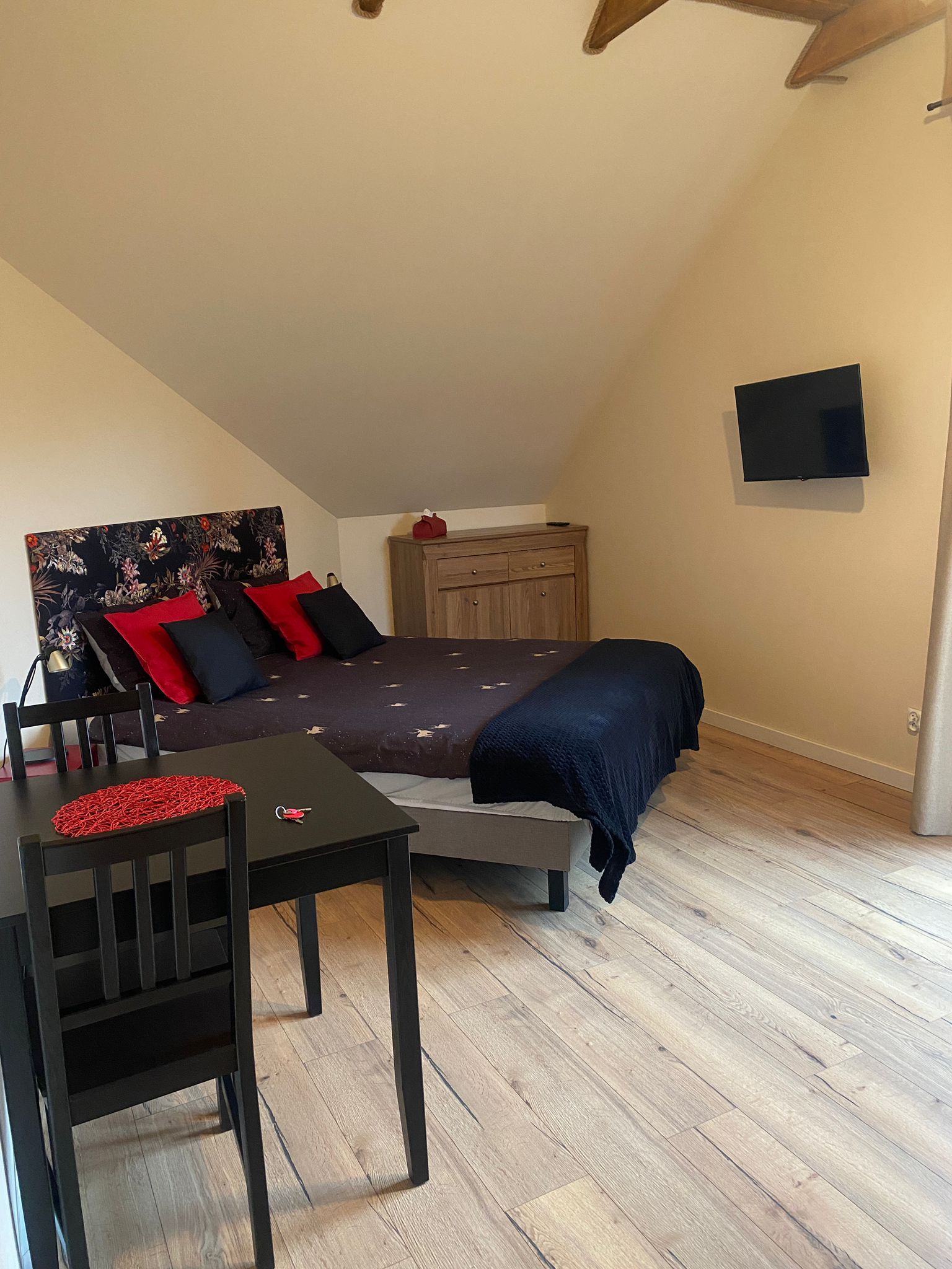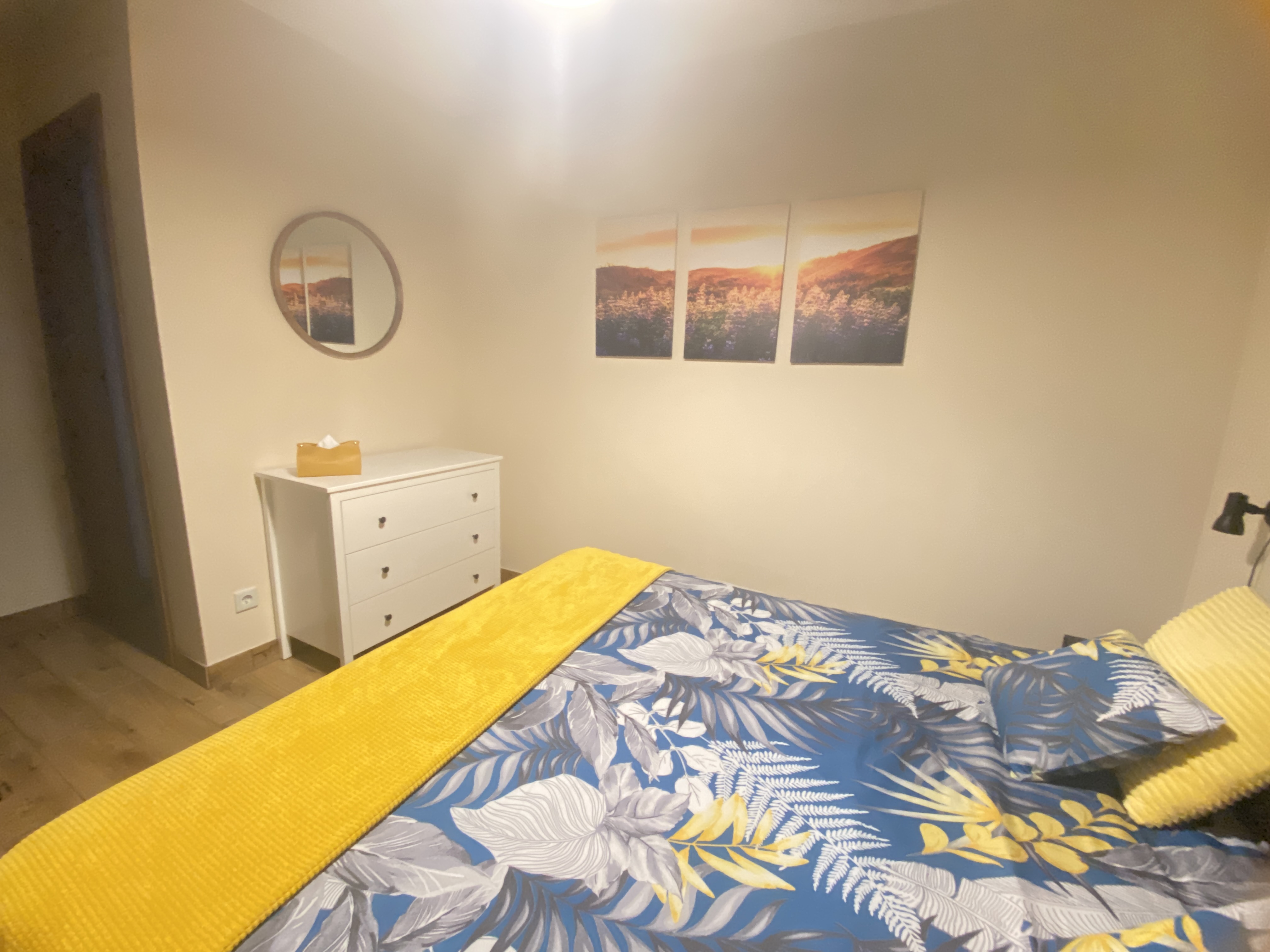W pokój oprócz małżeńskiego łóżka znajduje się wygoda kanapa dla jednej osoby dorosłej lub