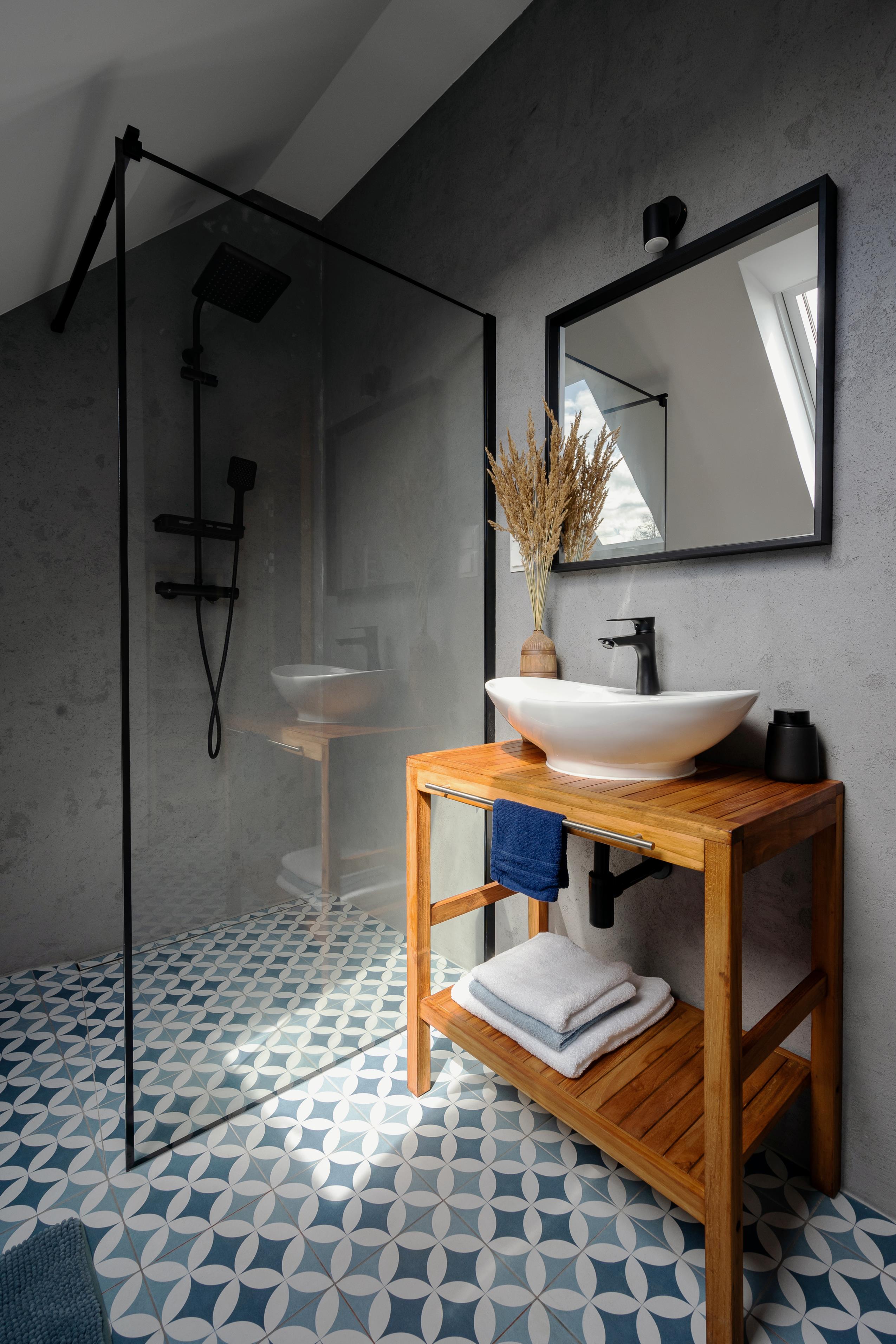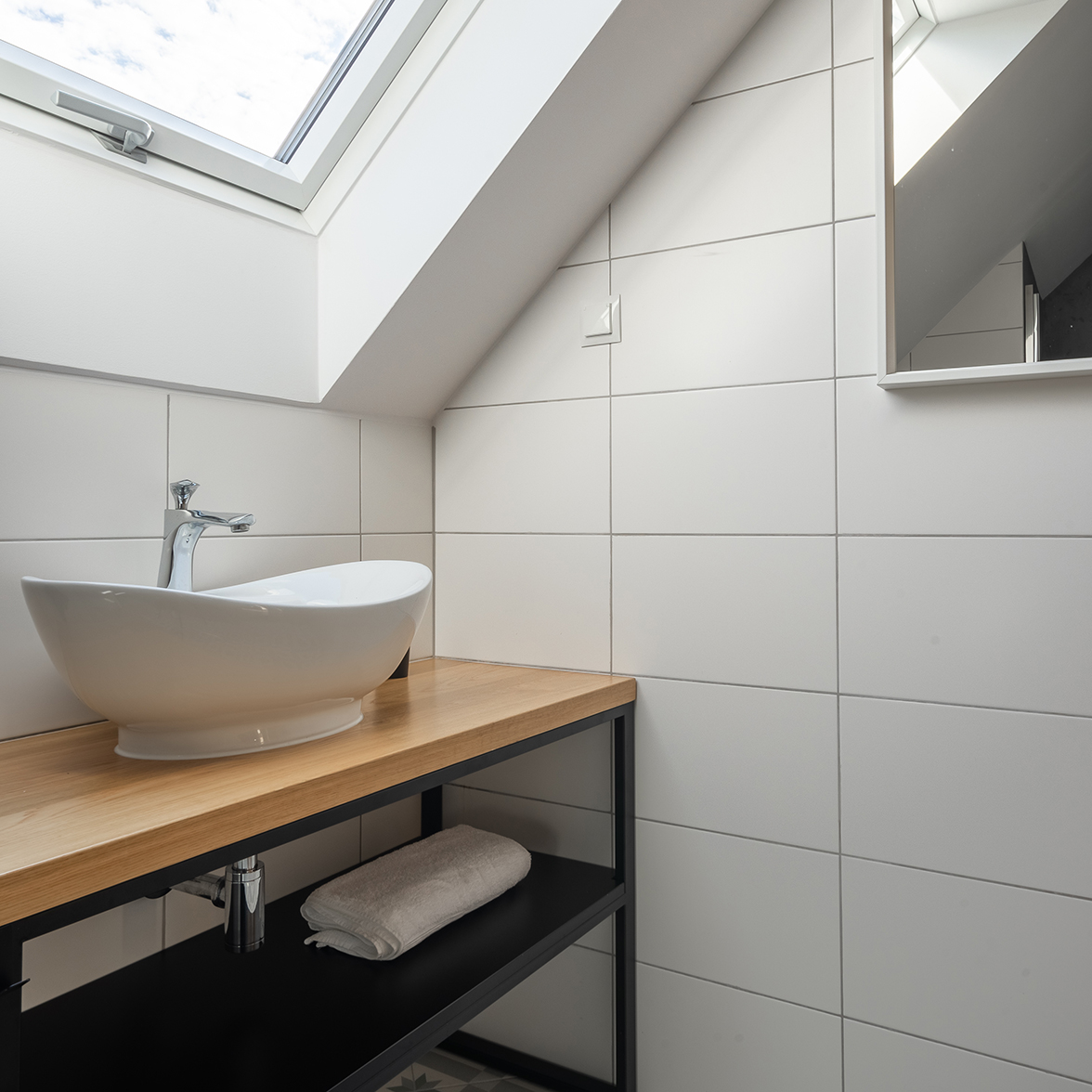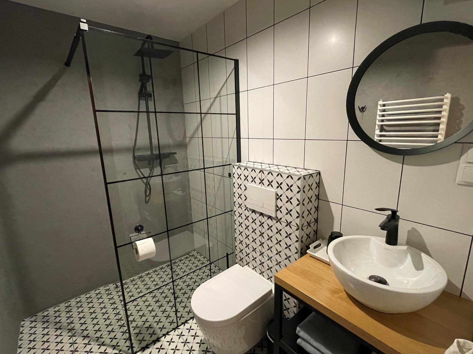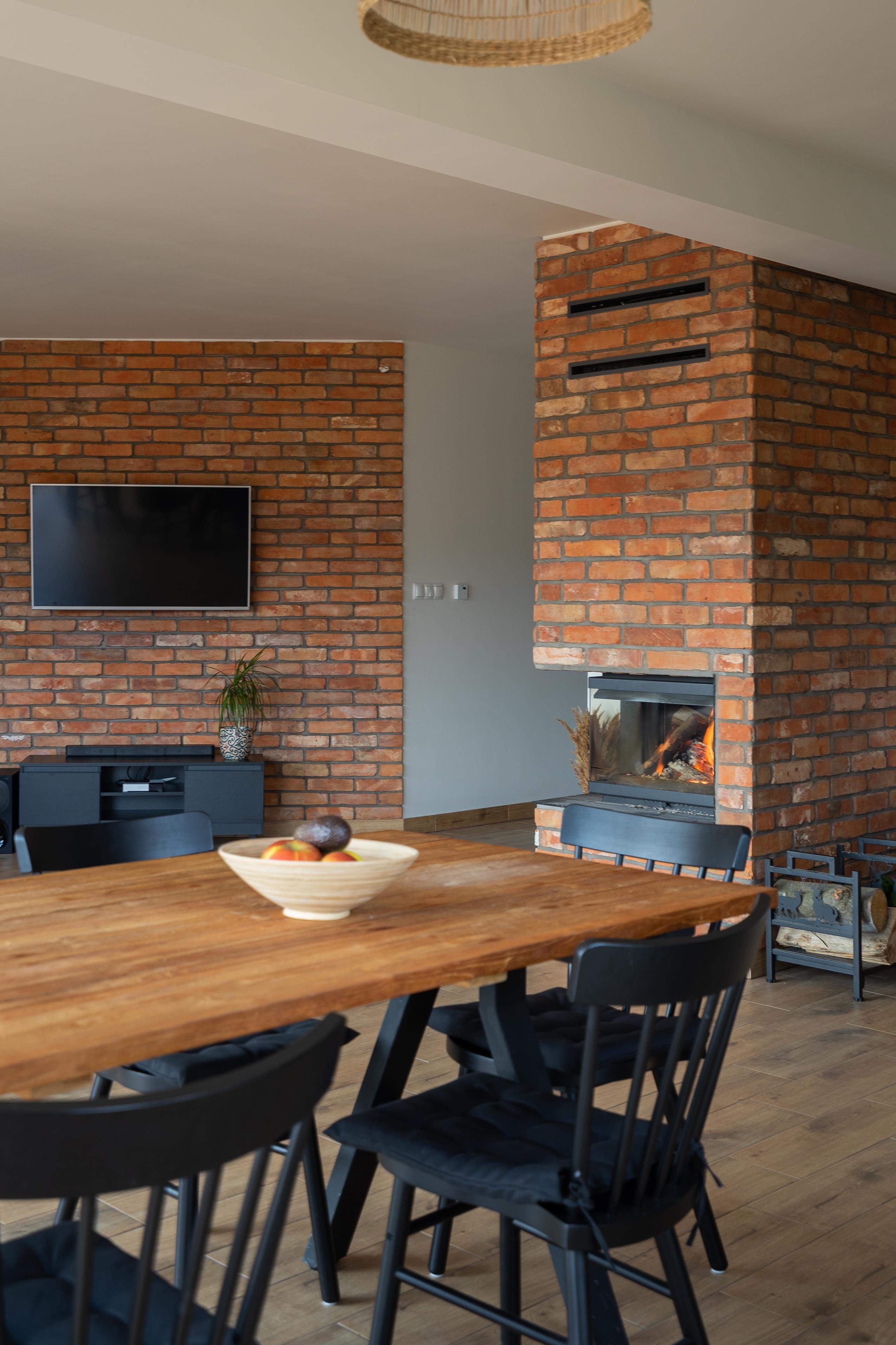 Apartament z kominkiem znajduje się na poziomie 0, posiada niezależne wejście z zewnątrz.