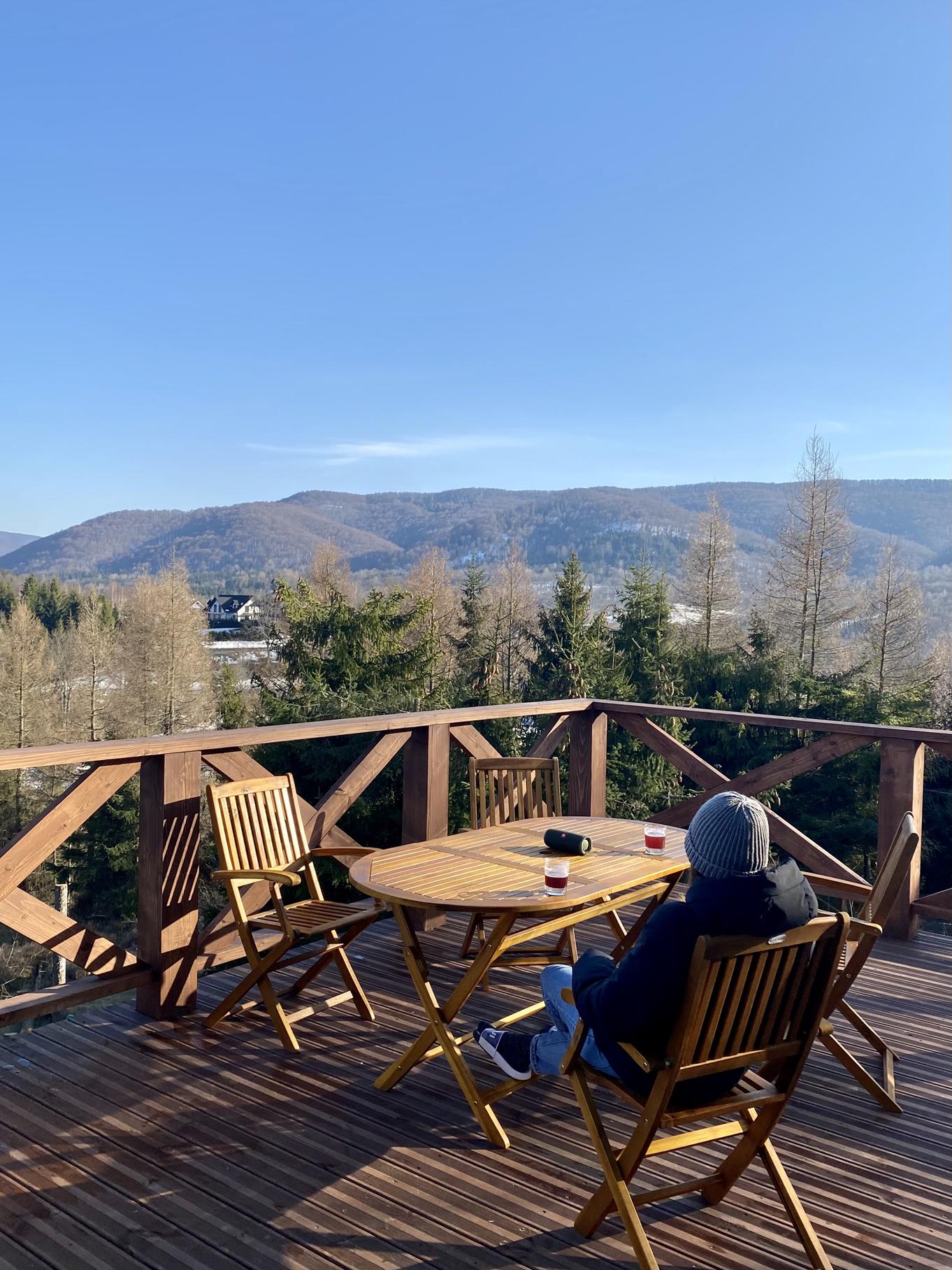 z którego roztacza się zachwycający widok na pasma górskie oraz wschód słońca.