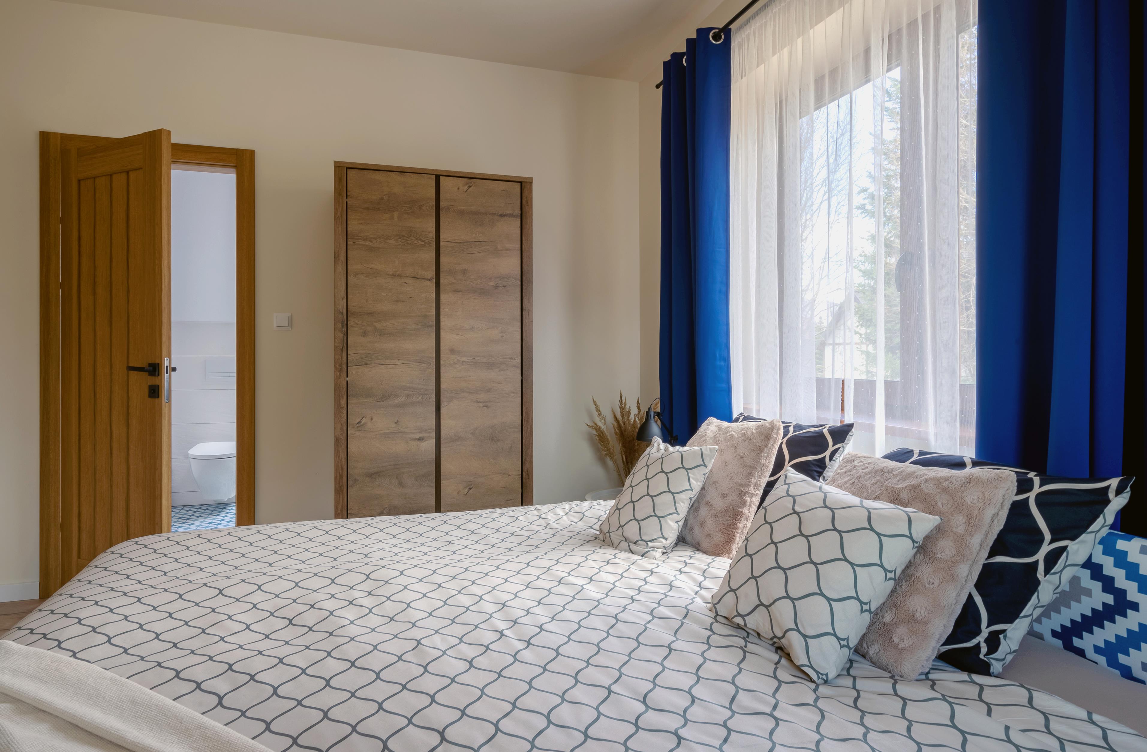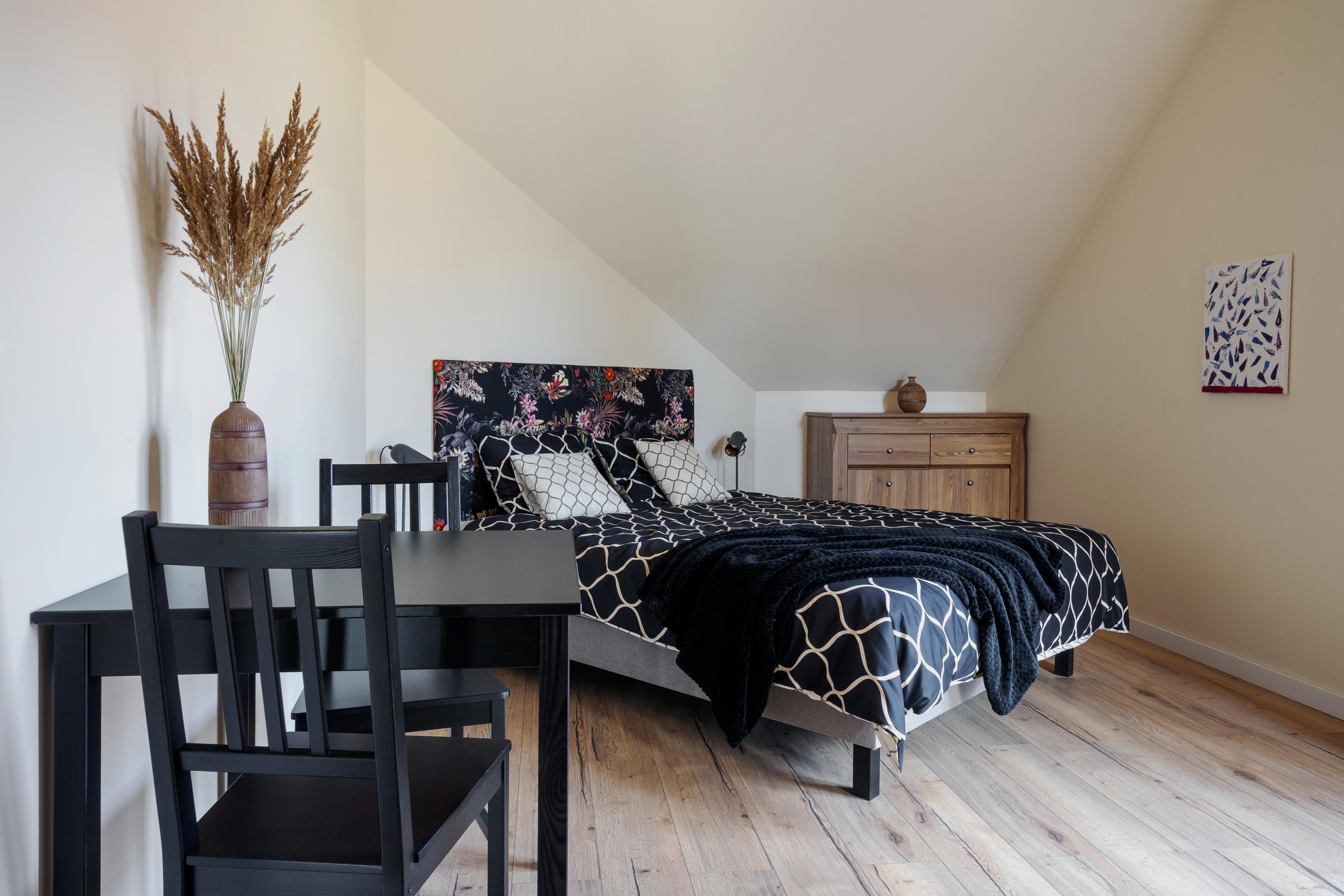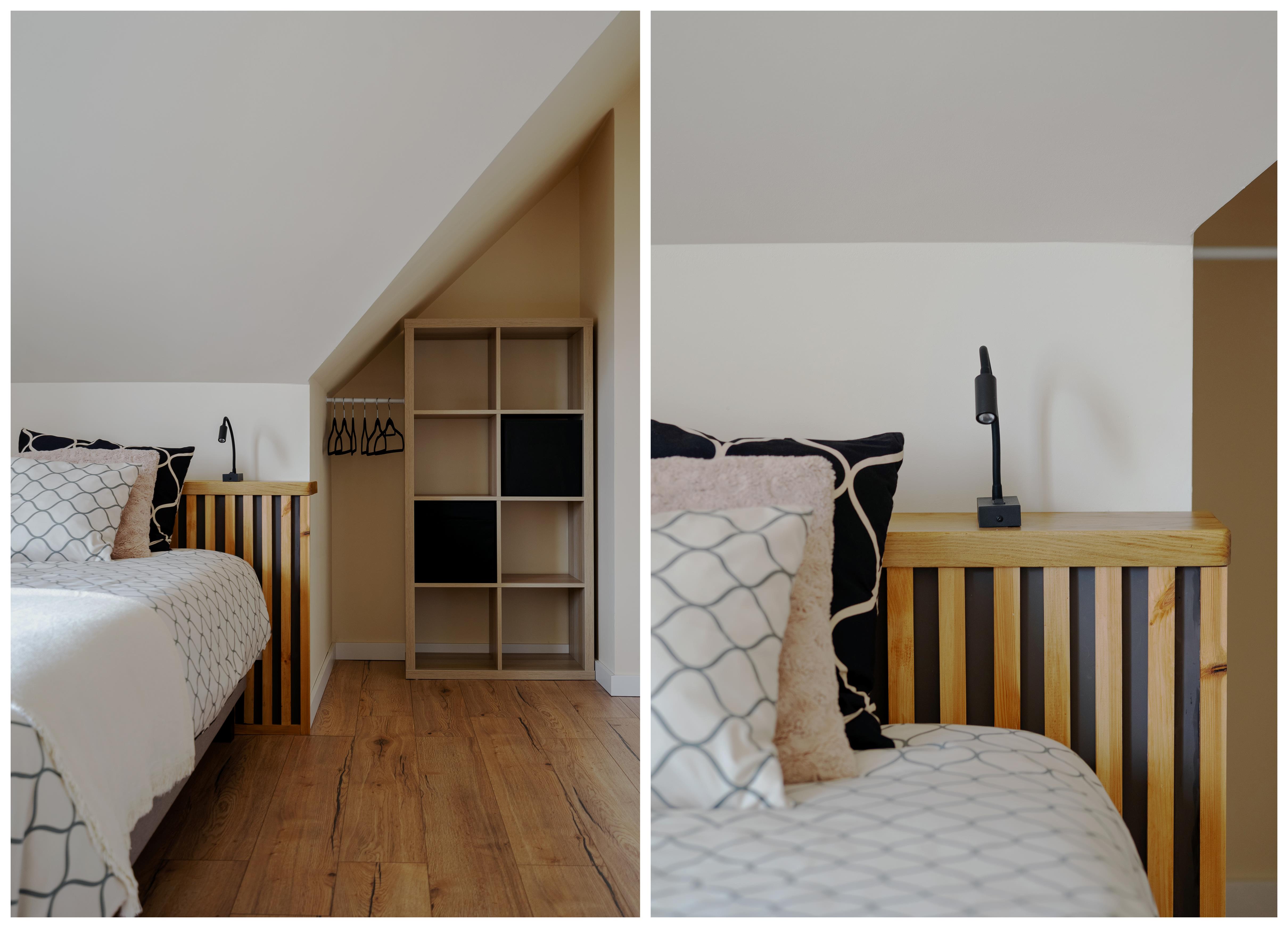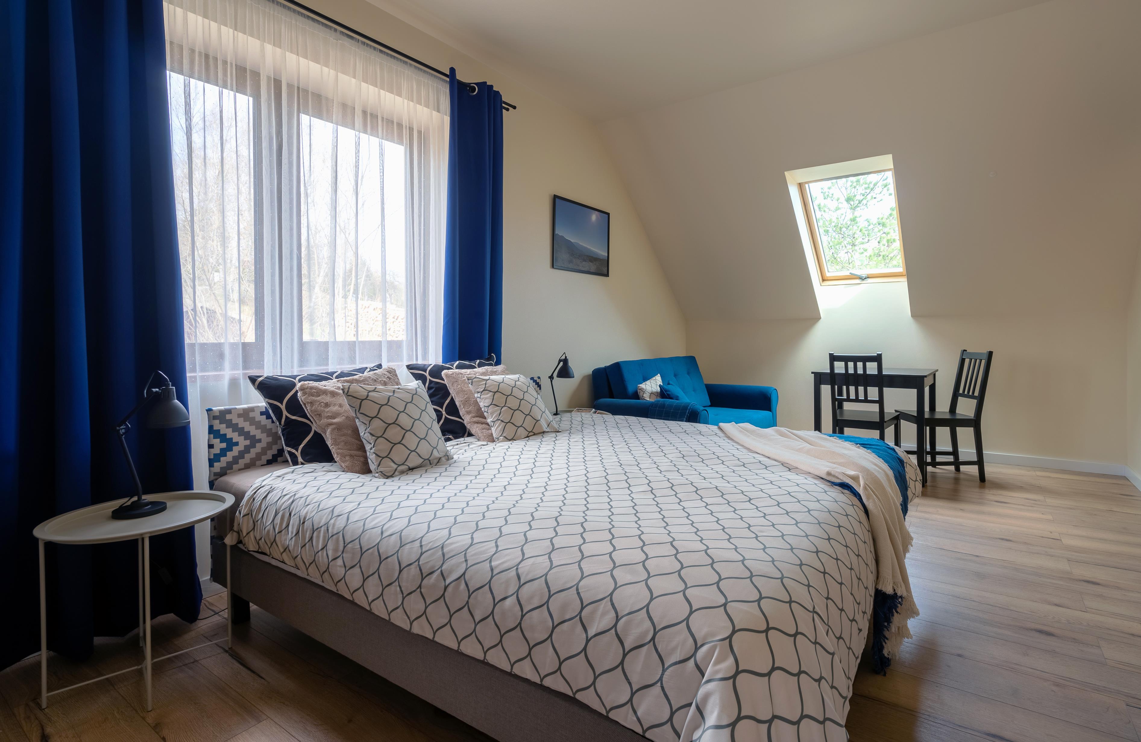 W pokój oprócz małżeńskiego łóżka znajduje się wygoda kanapa dla jednej osoby dorosłej lub
