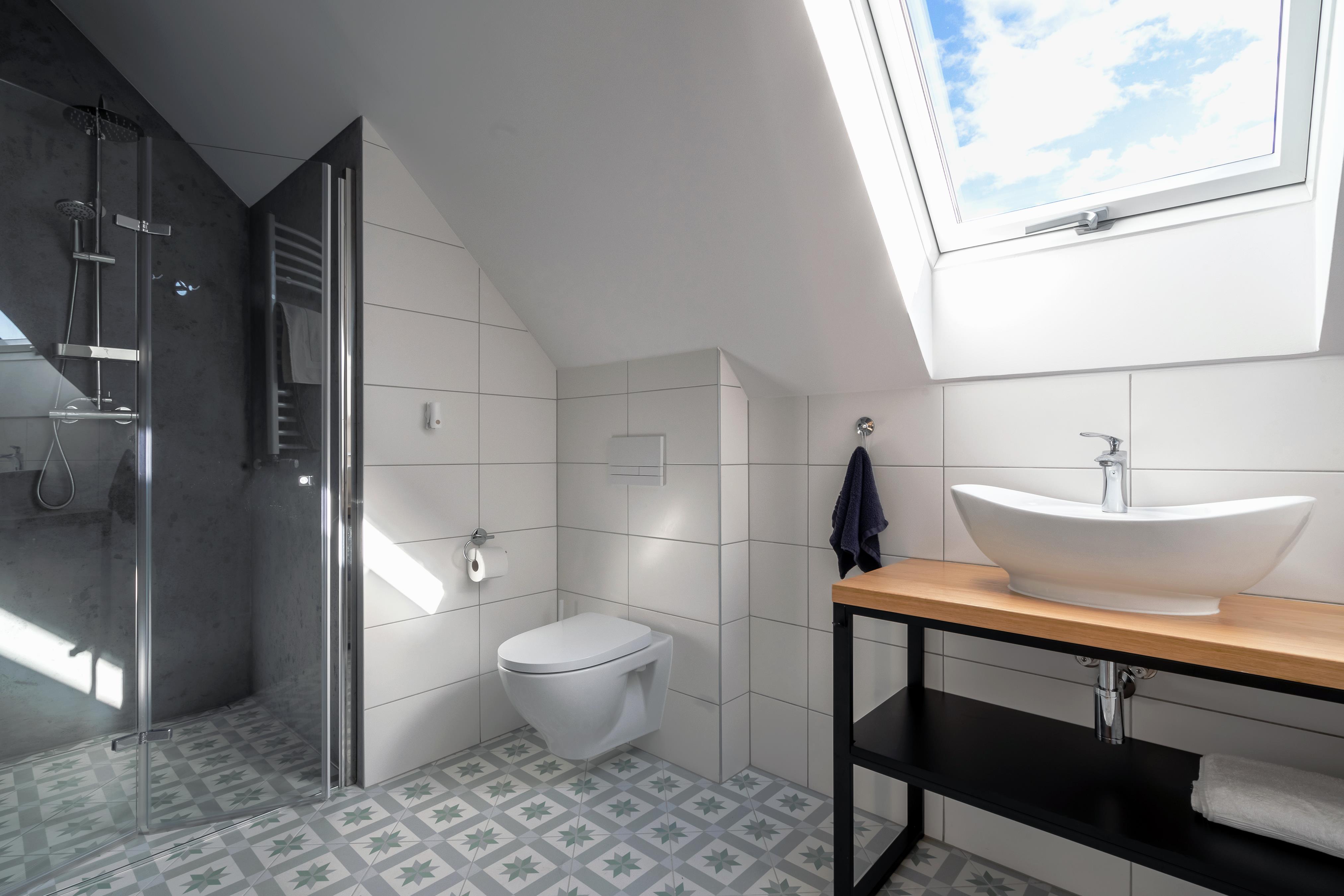 Każdy pokój posiada własną łazienkę, jak również stół, krzesła, szafę, komodę, TV, ręczniki i suszarkę do włosów.
